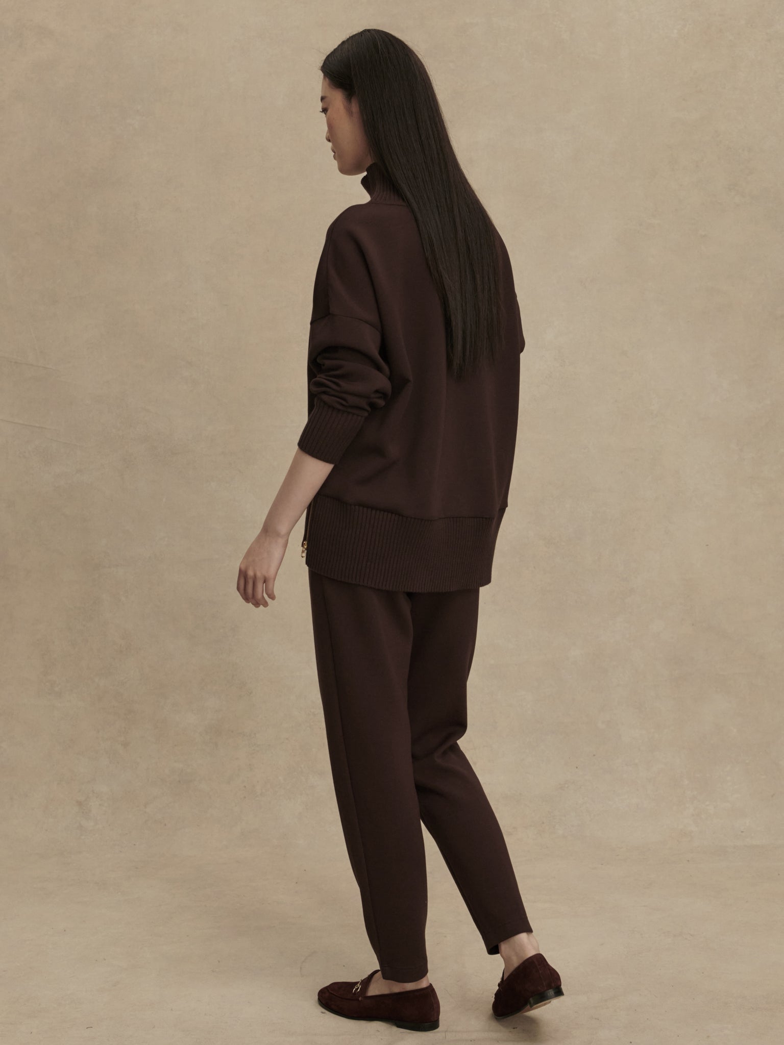 Studio model is 5'9.5", with a 23" waist, 34" hips, and wears a size small in the 27.5" length.